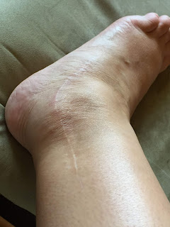 Surgery went well. There was fear that a tendon repair that had been performed last year would have to be cut again and I would be stuck with something called a snapping tendon. But luckily, the tumor was only active in the lower half of my foot and last year's repair held.